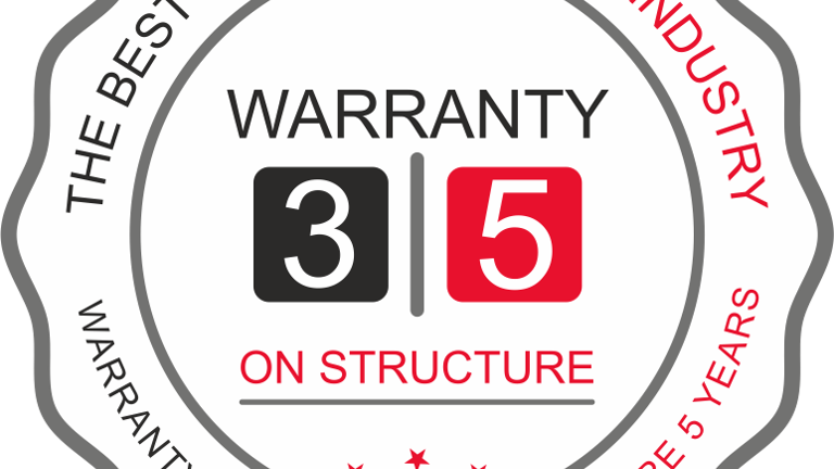 The 5-year structural warranty covers base, column, first boom, second boom, extensions, jib, stabiliser beams, all cylinders and pins for both hook and winch operations.